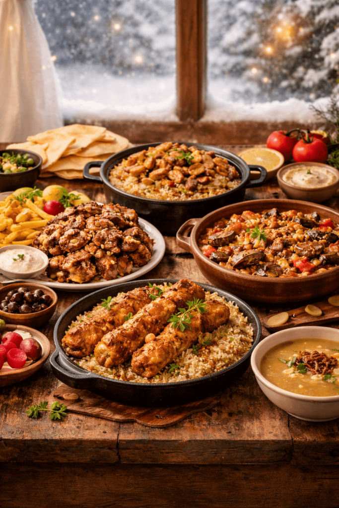 Quand l’hiver arrive, avec ses journées froides et enneigées, les plats chauds deviennent particulièrement réconfortants. La cuisine libanaise en propose de nombreux, préparés pour réchauffer le corps et le cœur. Le Chich Taouk, poulet mariné au citron et aux épices, s’accompagne de riz parfumé ou de légumes rôtis. Le chawarma, tendre et bien relevé, apporte une sensation de chaleur et de confort.